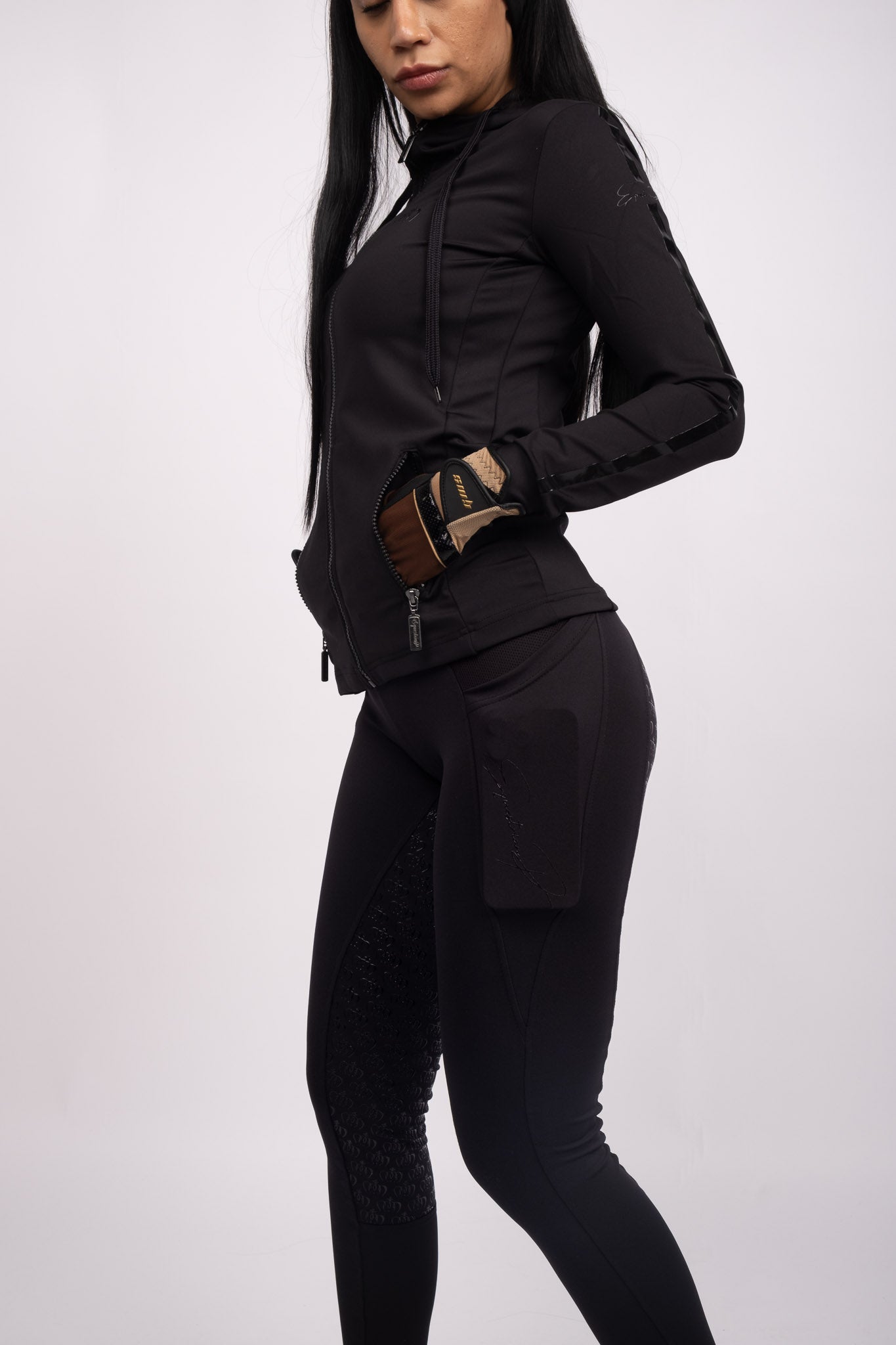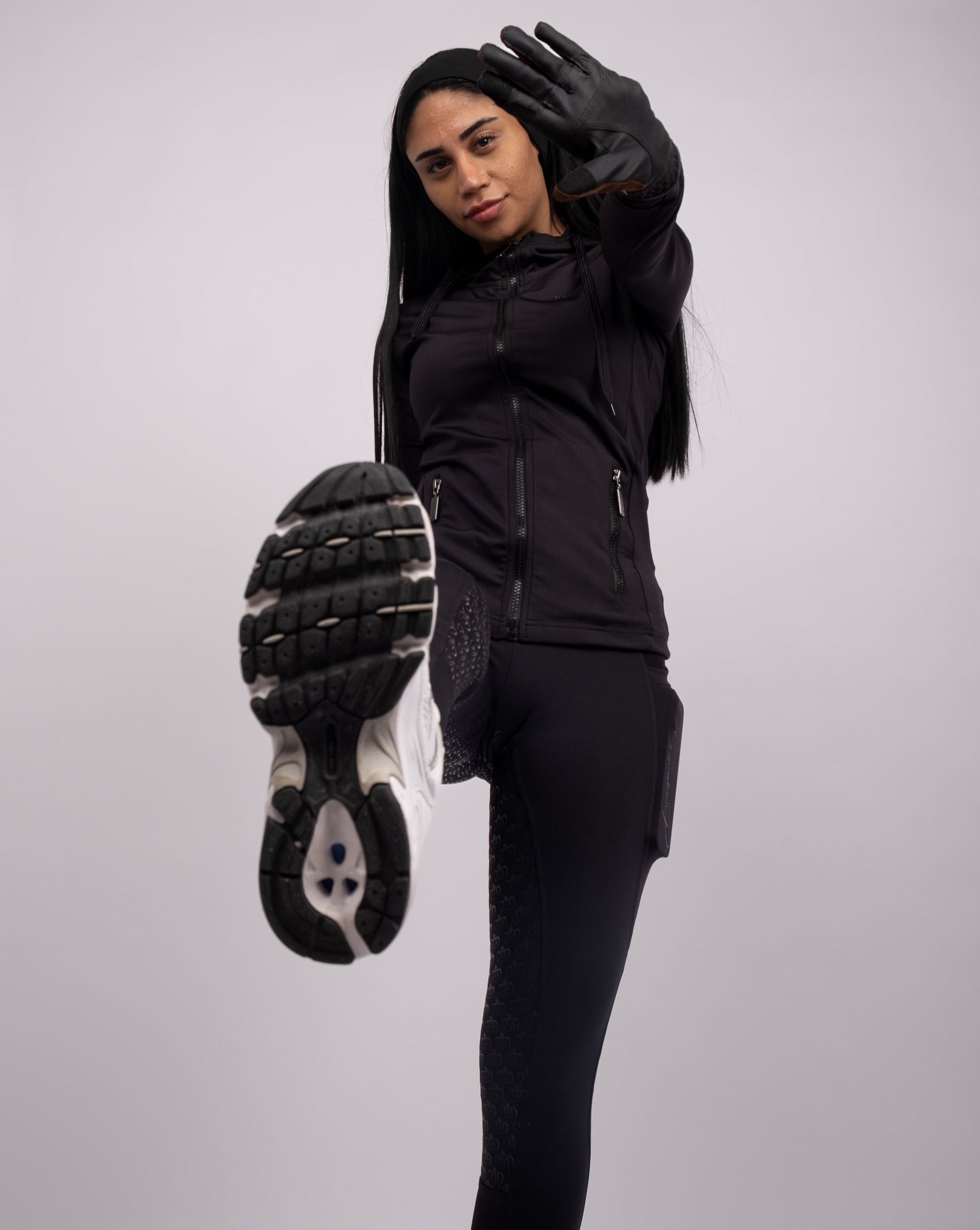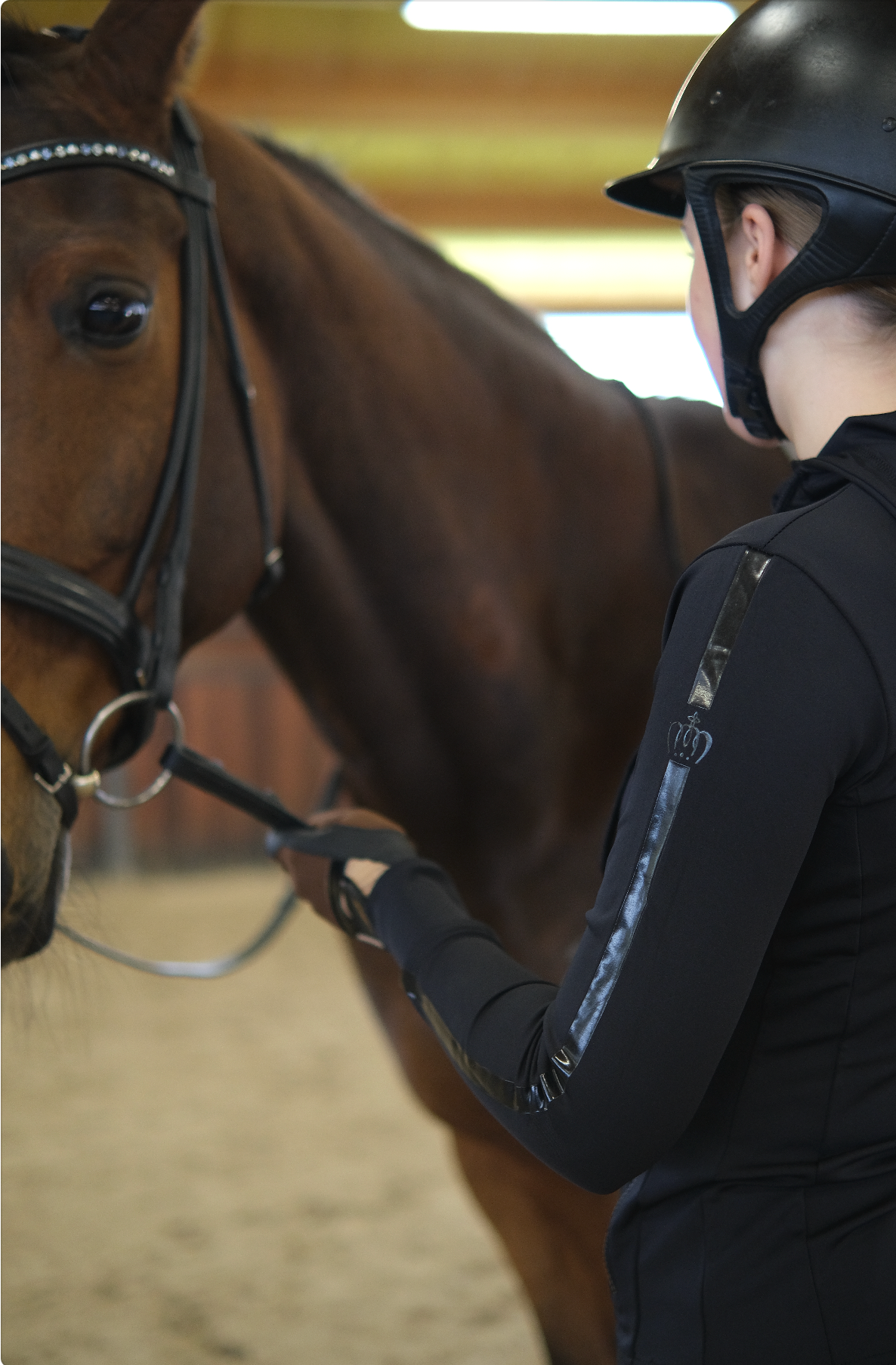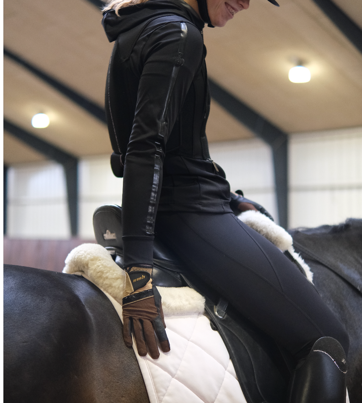 Die Passform ist eng und sorgt für einen schlanken und stylischen Look. Gleichzeitig wurde bei der Entwicklung Wert auf Komfort gelegt, sodass die Jacke auch bei Aktivitäten angenehm zu tragen ist. Die atmungsaktive Konstruktion ermöglicht eine optimale Luftzirkulation, wodurch die Jacke ideal zum Reiten und für andere Aktivitäten geeignet ist. Schöne Silikondetails an den Armen und am Rücken.
