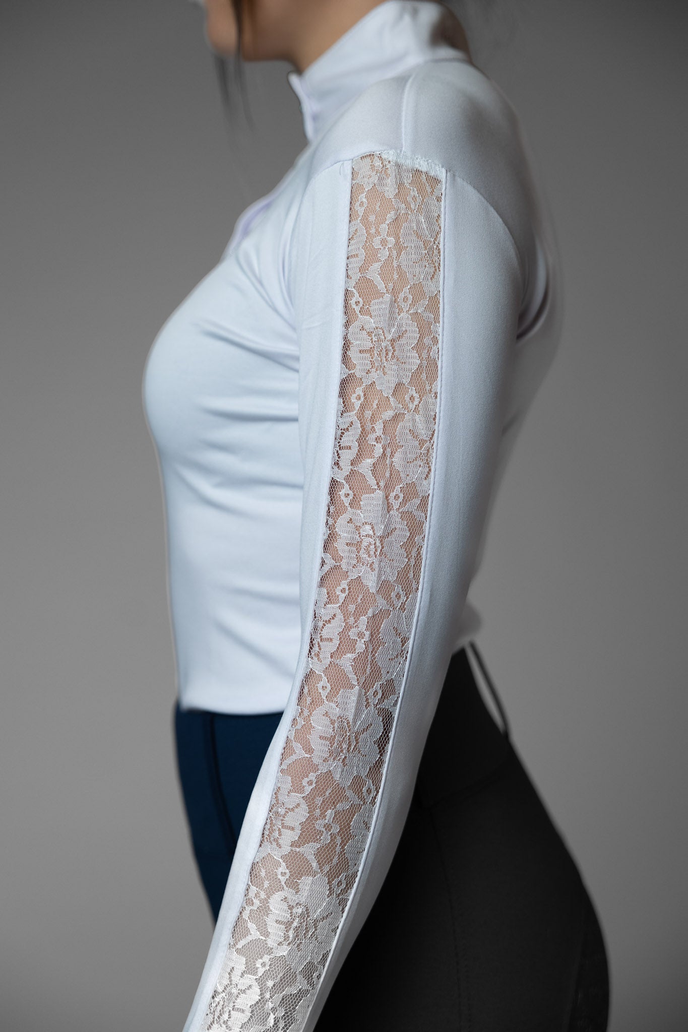 Maria ist mit einem Spitzendesign um die Ärmel herum konstruiert, das für eine hervorragende Luftzirkulation und feine Details auf dem Reitplatz sorgt.