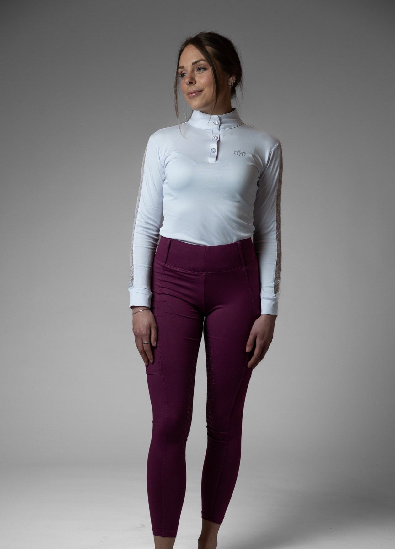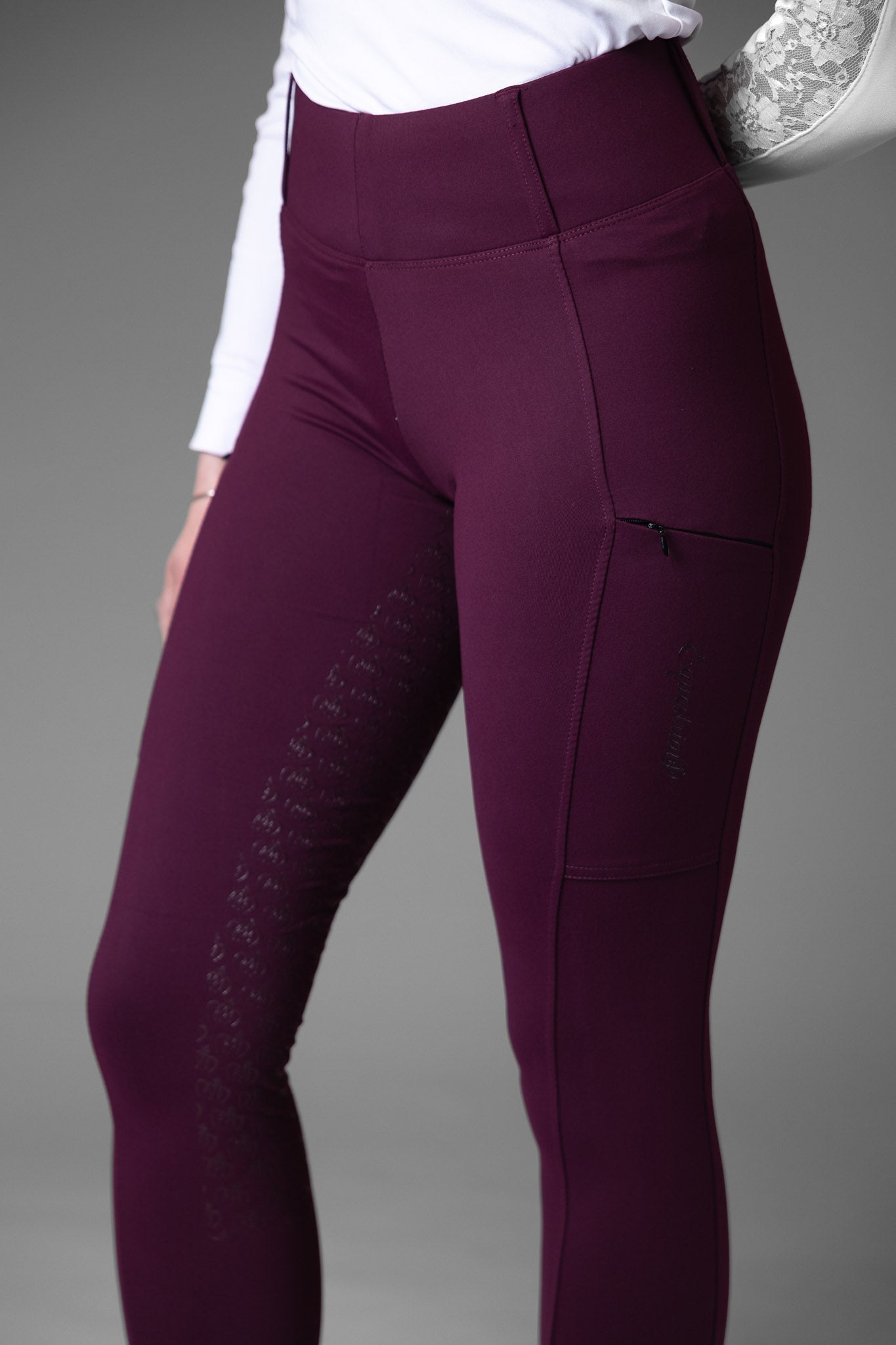 Lernen Sie Clairé kennen – Clairé wird aus recycelten Materialien hergestellt und ist ideal für alle, die elegante Ton-in-Ton-Details, ultimativen Komfort und eine perfekte Passform für jeden Fahrer wünschen! Ein modernes, von Reithosen inspiriertes Design mit hoher Taille, Gürtelschlaufen, breitem Futter und praktischen Handytaschen mit Reißverschluss an beiden Oberschenkeln. Clairé passt zu jedem Turniershirt, jeder Funktionsjacke und lässt sich mit fast allem kombinieren!