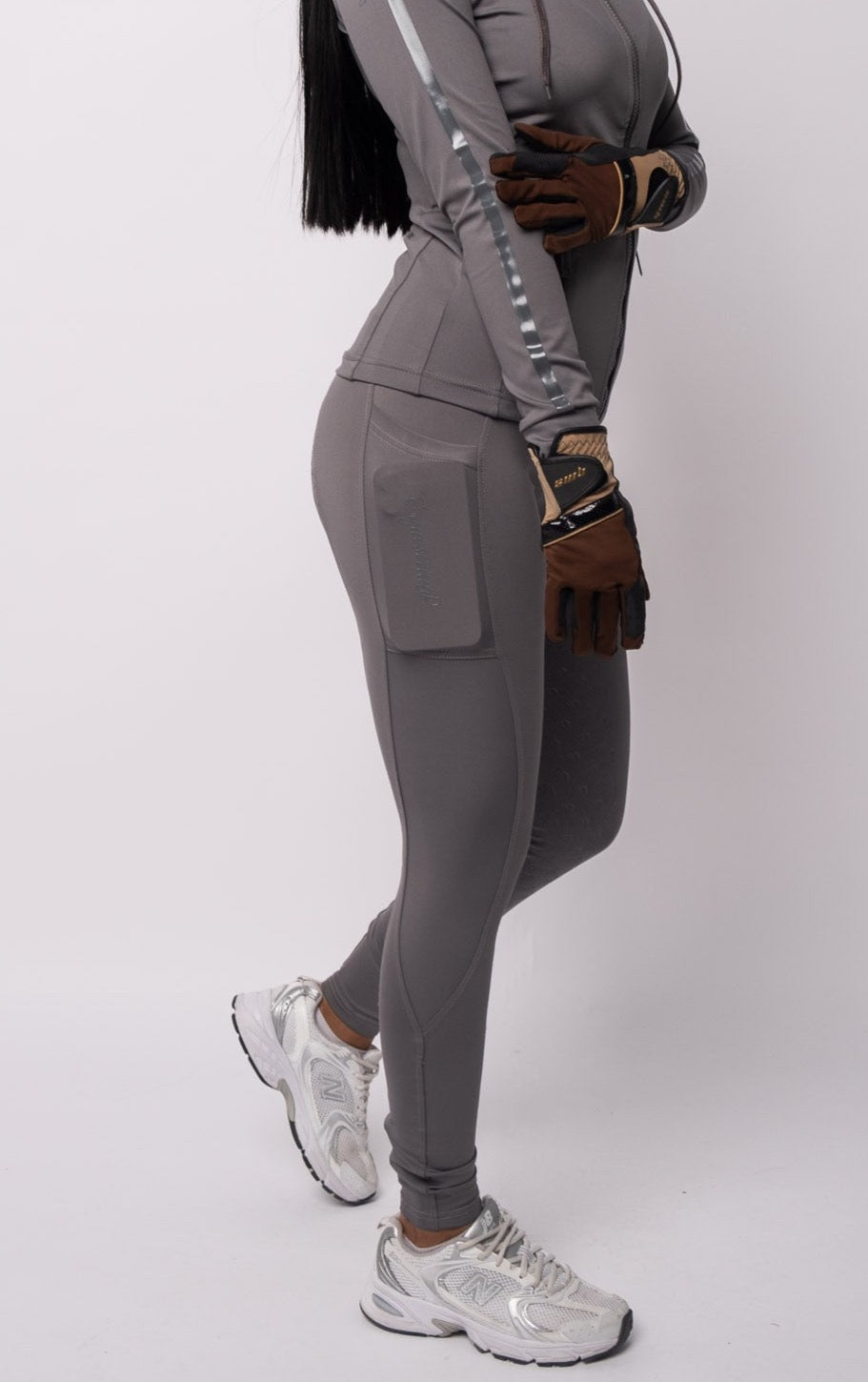 Wir stellen unsere neuen Elená FusionFlex-Strumpfhosen vor – die ultimative Wahl für stilbewusste Fahrer! Diese Reithose vereint die Optik einer Hose mit der uneingeschränkten Bewegungsfreiheit und dem Tragekomfort einer dehnbaren Strumpfhose. Mit angedeuteten Gesäßtaschen, Gürtelschlaufen und einer praktischen Tasche für Ihr Handy, damit Sie beim Fahren alles schnell zur Hand haben. Probieren Sie unsere Reithose Elená FusionFlex und erleben Sie die perfekte Balance zwischen Stil, Funktionalität und Nachhaltigkeit!