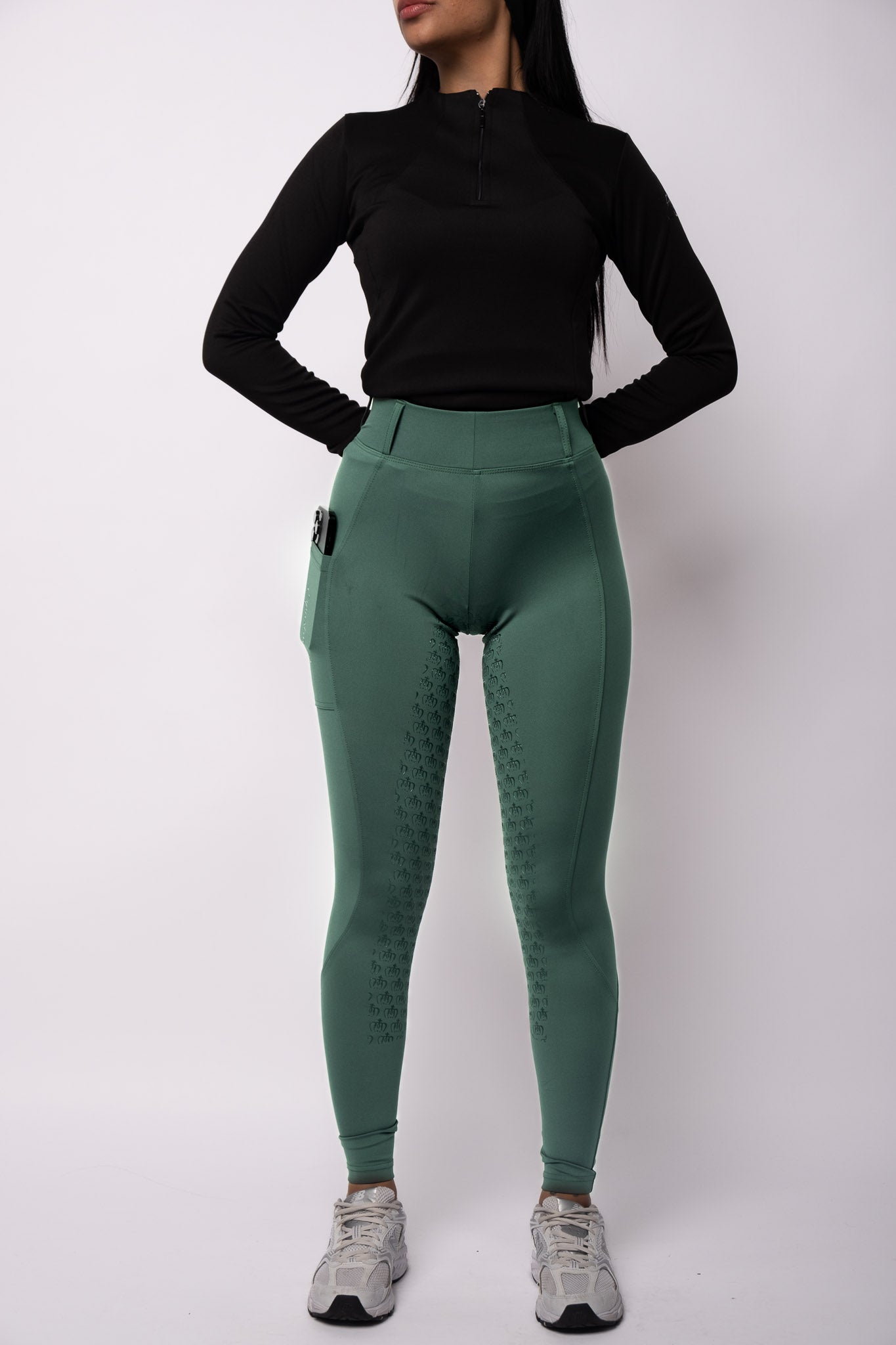Wir stellen unsere neuen Elená FusionFlex-Strumpfhosen vor – die ultimative Wahl für stilbewusste Fahrer! Diese Reithose vereint die Optik einer Hose mit der uneingeschränkten Bewegungsfreiheit und dem Tragekomfort einer dehnbaren Strumpfhose. Mit angedeuteten Gesäßtaschen, Gürtelschlaufen und einer praktischen Tasche für Ihr Handy, damit Sie beim Fahren alles schnell zur Hand haben. Probieren Sie unsere Reithose Elená FusionFlex und erleben Sie die perfekte Balance zwischen Stil, Funktionalität und Nachhaltigkeit!