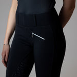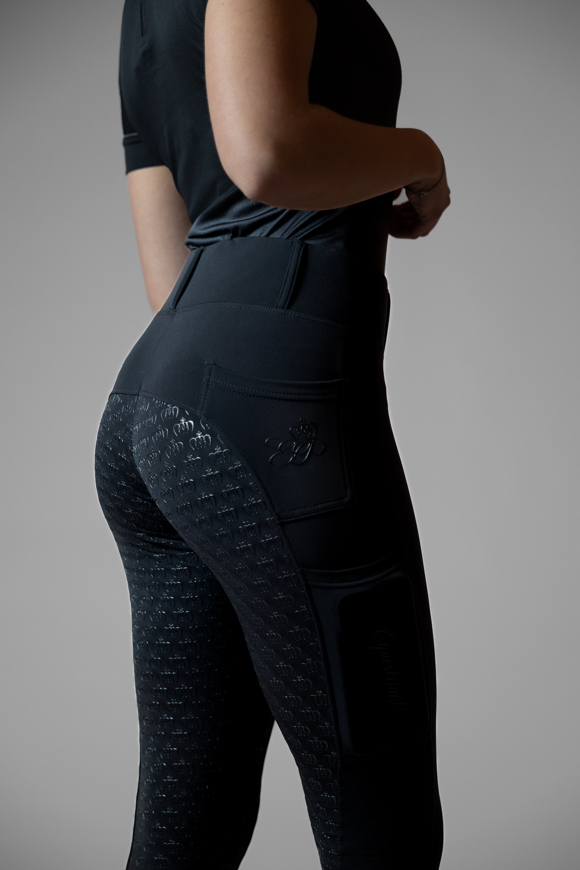 Die Juliet Tight von Equestrian P ist eine Wintertight mit Thermofleece auf der Innenseite, die in den kalten Monaten für Wärme und Komfort sorgt. Es verfügt über eine praktische kleine Vordertasche mit Reißverschluss zur Aufbewahrung kleiner Gegenstände wie Schlüssel sowie eine große offene Tasche auf der rechten Seite, die sich ideal zur Aufbewahrung Ihres Telefons eignet. Das Thermofleece-Futter auf der Innenseite isoliert gegen Kälte, während die hoch taillierte Passform und die integrierten Gürtelschlaufen für einen bequemen und sicheren Sitz beim Fahren sorgen. Mit der Juliet Tight sind Sie bereit, das Fahren im Herbst und Winter zu genießen, ohne zu frieren.