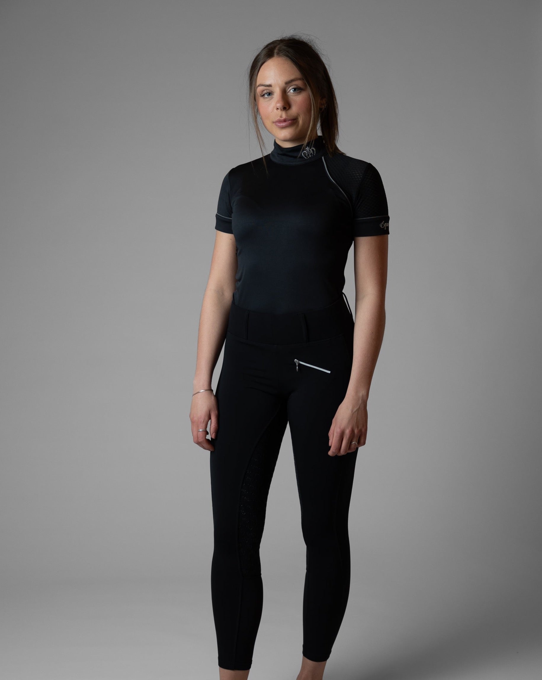 Bei unseren Reitleggings steht die Atmungsaktivität für maximalen Komfort beim Reiten im Vordergrund. Sie wurden für eine effektive Luftzirkulation entwickelt, regulieren die Temperatur und reduzieren die Luftfeuchtigkeit, sodass sie sich ideal für längere Fahrten eignen. Dies sorgt für ein frisches Gefühl, weniger Schwitzen und verbesserten Komfort im Sattel.