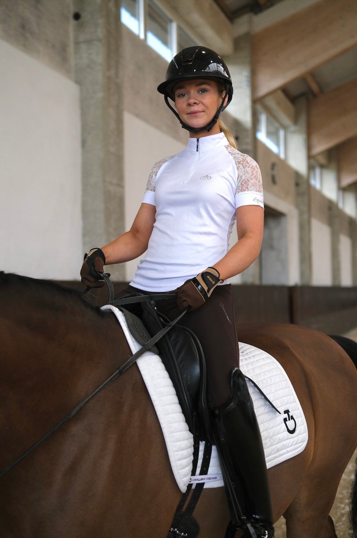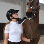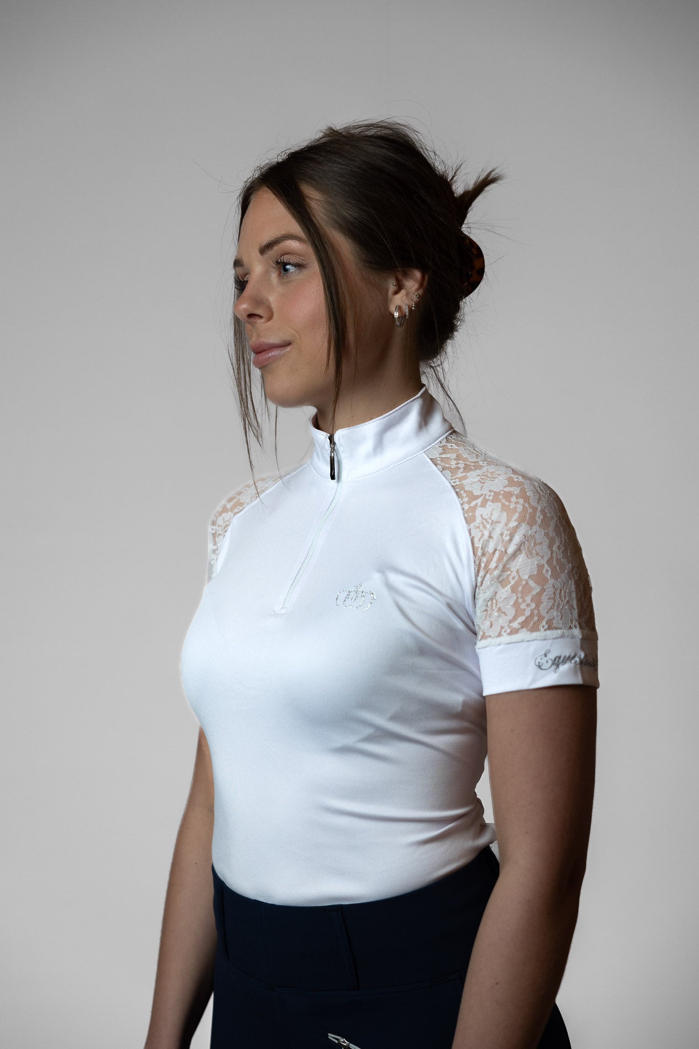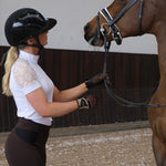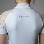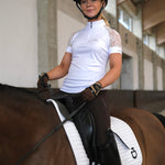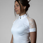Jennifer ist mit einem Spitzendesign um die Ärmel herum konstruiert, das für eine hervorragende Luftzirkulation sorgt und ein einzigartiges Detail auf dem Reitplatz darstellt.