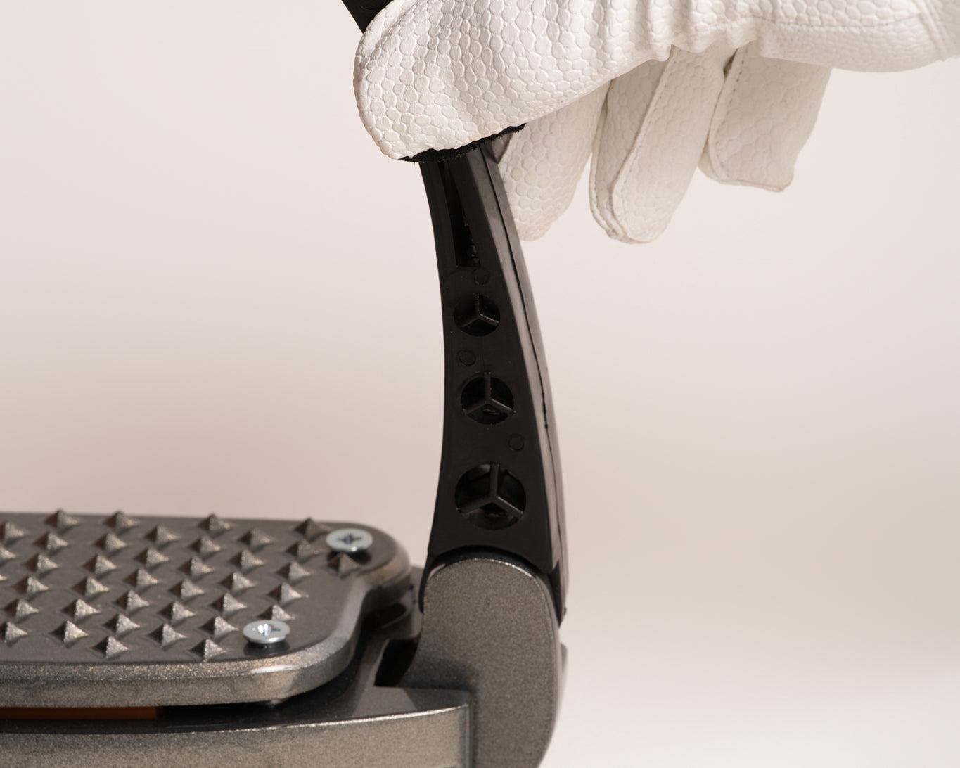 Bøjlen kombinerer vores populære sikkerhedsdesign med en nyudviklet gel-pad teknologi, der skaber en unik trampolin-lignende stødabsorbering. Gelen former sig efter foden, reducerer tryk og giver en blød, elastisk og støttende fornemmelse gennem hele rideturen: perfekt til ryttere, der oplever småsmerter eller vil passe bedst muligt på deres ankler.