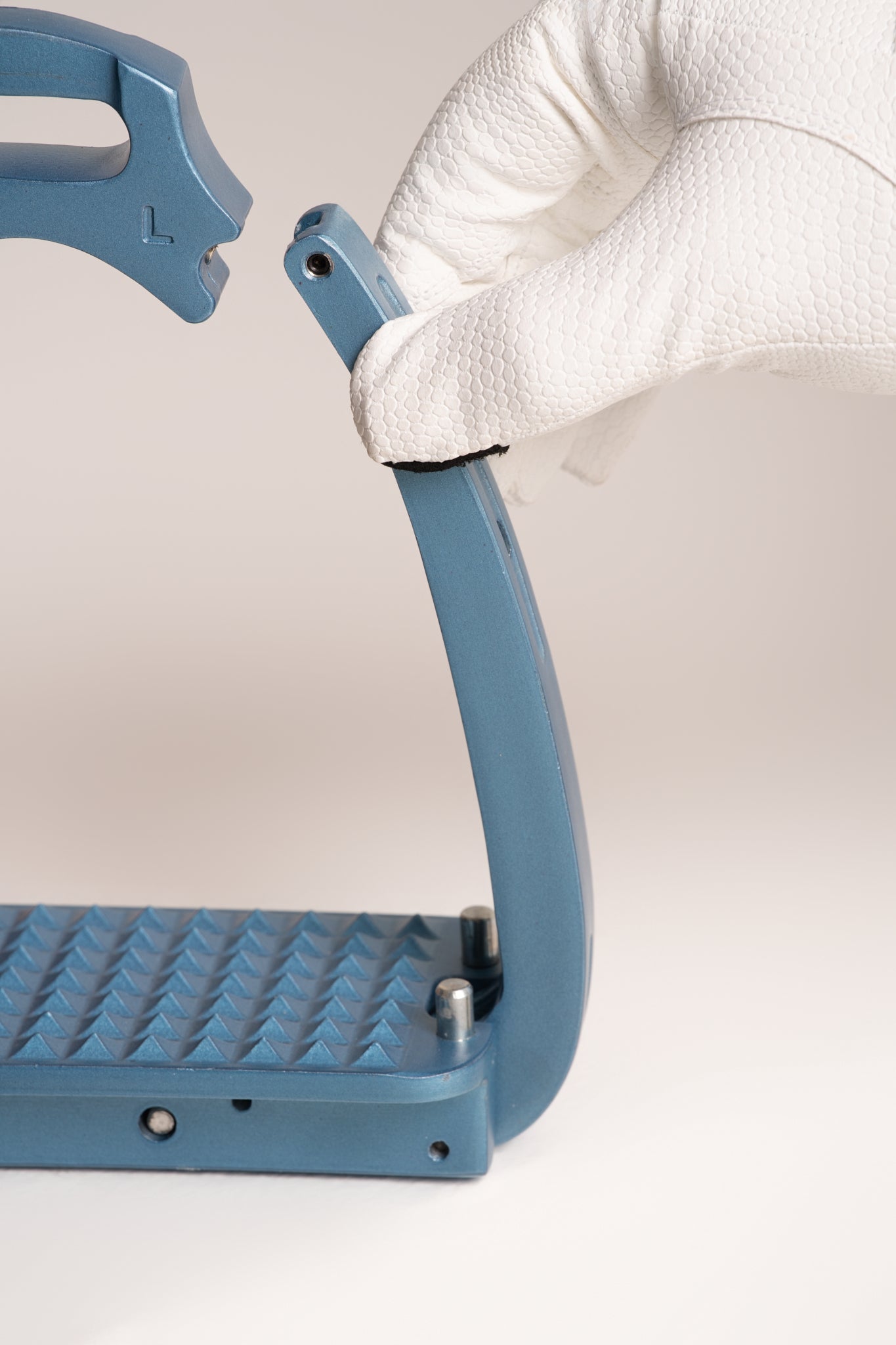 Vores åbnings mekanisme i åbningsarmen reagerer øjeblikkeligt på eventuelle nødsituationer eller uheld, hvilket sikrer hurtig og sikker frigørelse af rytterens fod. Når du støder med din vægt ved åbningen, glider din fod ud med det samme så du ikke bliver fastlåst.